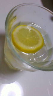 果汁を水で割って、氷入れて、砂糖漬けしたレモン浮かべただけ!