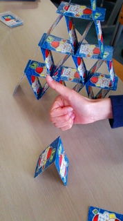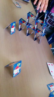 んーで、ババ抜きめっちゃしたけど飽きたからトランプタワー作成開始。