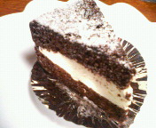 やむなく私は第2候補だったチョコスポンジに生クリームがはさまれているケーキ(↓)への変更を余儀なくされたのですた。トホホ…