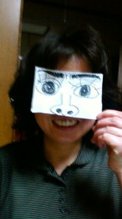 ↓は、実家に居るときにその辺にあった紙に適当に落書きして即席デカ目女に大変身★←え
